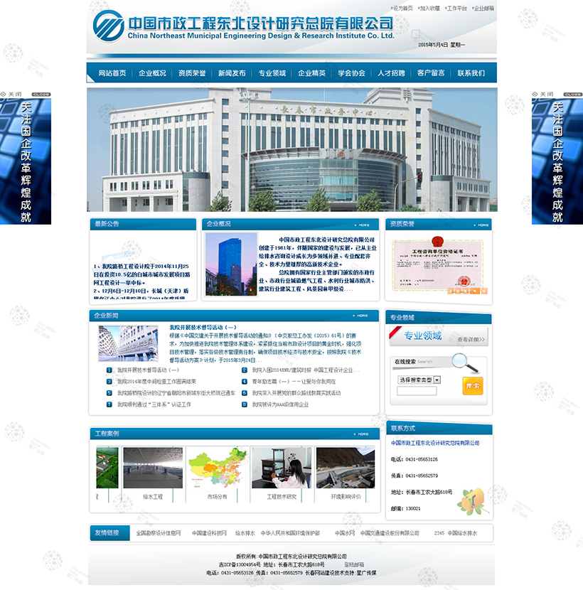 中國市政工程東北設計研究總院有限公司創(chuàng)建于1961年,伴隨國家的建設與發(fā)展,已從主業(yè)給排水咨詢設計成長為多領域并進、專業(yè)配套齊全、技術力量雄厚的高新技術企業(yè)。