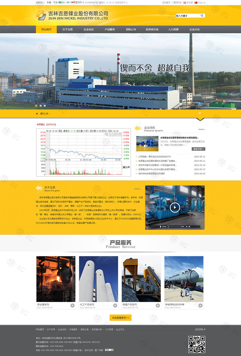 吉林吉恩鎳業(yè)股份有限公司是昊融集團旗下最大控股子公司,高新技術(shù)企業(yè)和創(chuàng)新型企業(yè),總部地處長白山下、松花江畔,由吉林鎳業(yè)集團有限責任公司集中優(yōu)勢資產(chǎn)發(fā)起設立的(吉林鎳業(yè)集團現(xiàn)改組變更為吉林昊融集團股份有限公司)。吉恩鎳業(yè)承繼歷史,追求卓越,通過不斷的優(yōu)質(zhì)資產(chǎn)重組,調(diào)整產(chǎn)業(yè)產(chǎn)品結(jié)構(gòu),高起點建設,高科技投入,并強化國際合作,行業(yè)整合,現(xiàn)已發(fā)展成集采礦、選礦、冶煉、化工于一體的大型有色企業(yè)。現(xiàn)有資產(chǎn)總額265.31億元,員工5000多人,總部占地面積450萬平方米。
