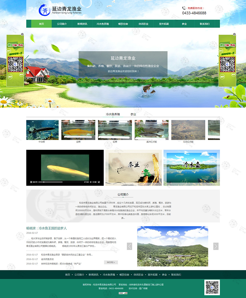 和龍市青龍漁業(yè)有限公司位于吉林省和龍市頭道鎮(zhèn)青龍地域,距延吉市60公里,和龍市38公里,公司占地10平方米,是利用天然地下涌泉養(yǎng)殖冷水性魚(yú)類(lèi)的漁業(yè)企業(yè),養(yǎng)殖區(qū)面積達(dá)12000平方米,養(yǎng)殖的品種有紅鱒、金樽、七彩鮭、細(xì)鱗鮭、花羔紅點(diǎn)鮭等諸多品種,年產(chǎn)發(fā)眼卵2000萬(wàn)粒,商品魚(yú)15萬(wàn)公斤。2012年被農(nóng)業(yè)部評(píng)為細(xì)鱗鮭魚(yú)原種場(chǎng)。